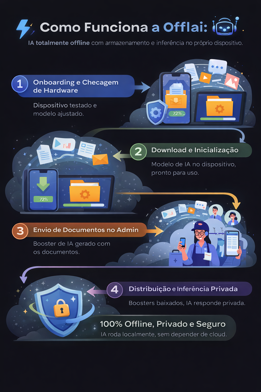 Nossa plataforma completa atende equipes em setores sensíveis e operações remotas, levando o conhecimento da sua empresa direto para os smartphones — sem dependência de internet, com privacidade e segurança dos dados.